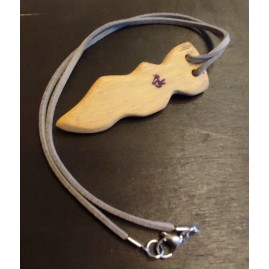 Pendentif Keris avec Aventurine verte : Pendentif unique, comme toutes les créations Esprit des Bois, en bambou (provenance Nord Isère) avec incrustation d'une pierre d 'Aventurine verte. Le bois a été enduit à l'huile de Lin biologique. Fourni avec un cordon en cuir (toutes tailles).