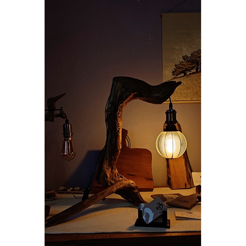 Lampe en bois de Peuplier Noir avec ampoule déco "aiguilles de Sapin".